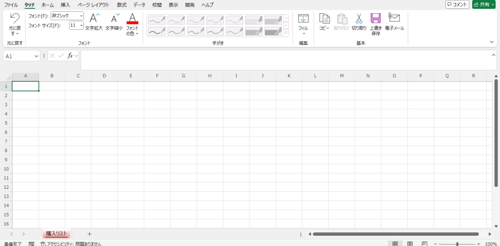 「購入リスト」シートを作成し、分かりやすいように色を付けます。